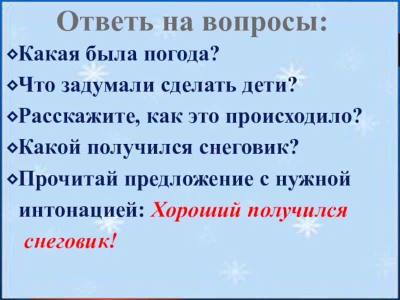 Слайд 15 Весь день шёл мягкий пушистый снег. Дети решили слепить снеговика.