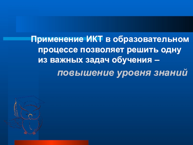 Слайд 30Применение ИКТ в образовательном процессе позволяет решить одну из важных задач