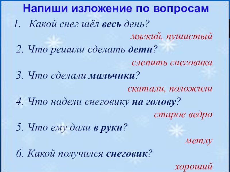 Слайд 18Напиши изложение по вопросам