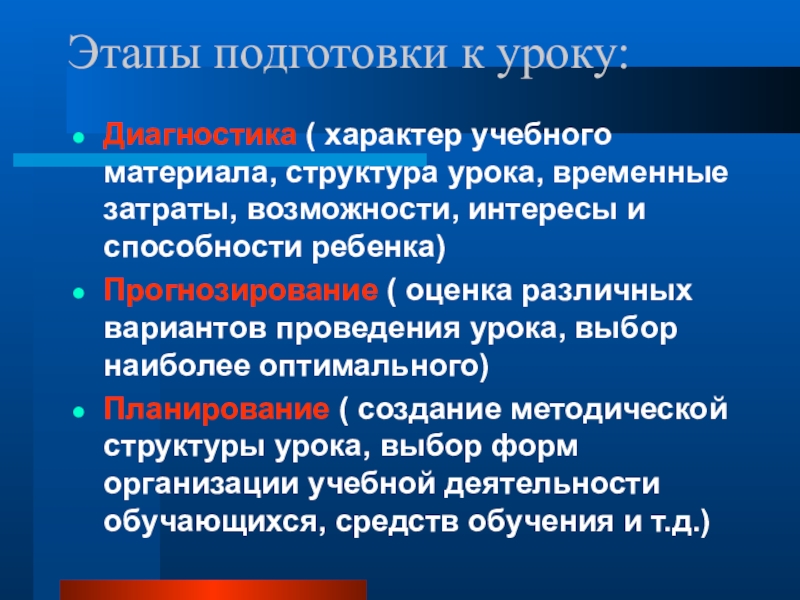 Слайд 7Этапы подготовки к уроку: