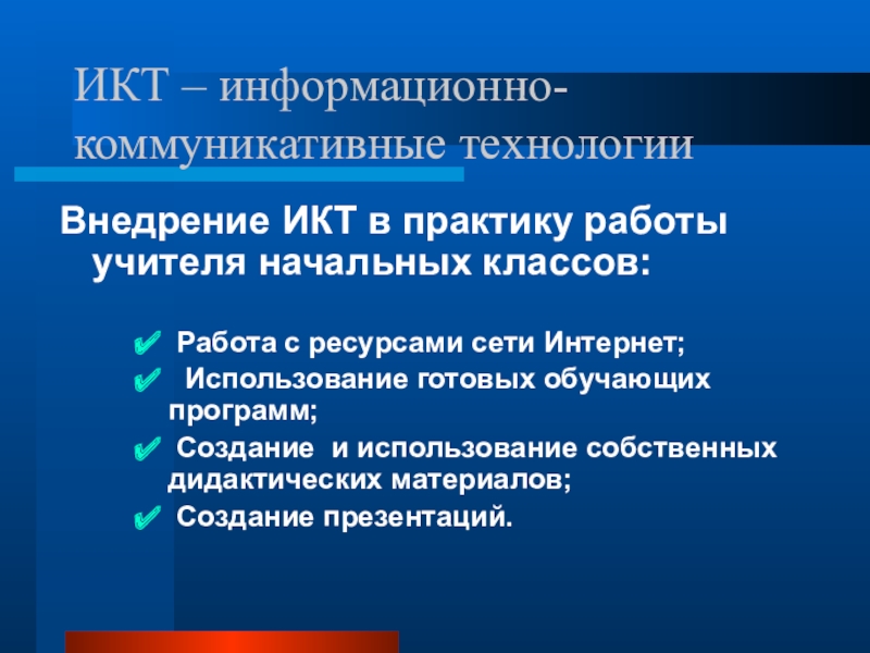 Внедрение ИКТ в практику работы учителя начальных классов: