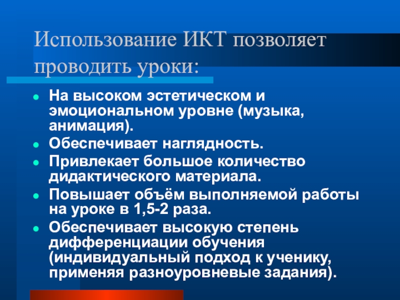 Слайд 3Использование ИКТ позволяет проводить уроки: