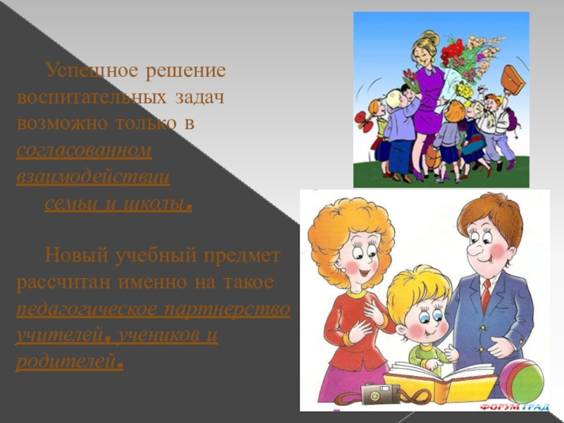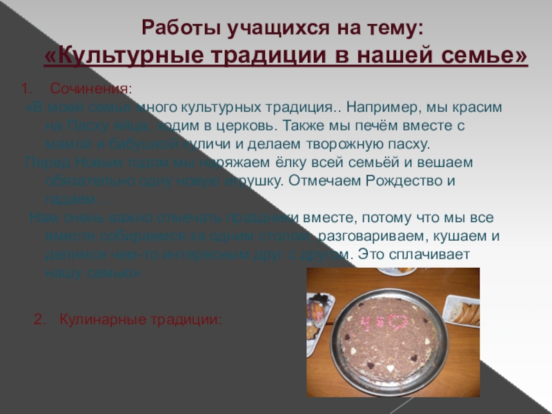 Система творческих вопросов-заданий построена так, что для их подготовки школьник обращается к опыту своих родителей, бабушек и дедушек, узнает их точку зрения по тому или иному вопросу, знакомится с традициями семейной жизни.