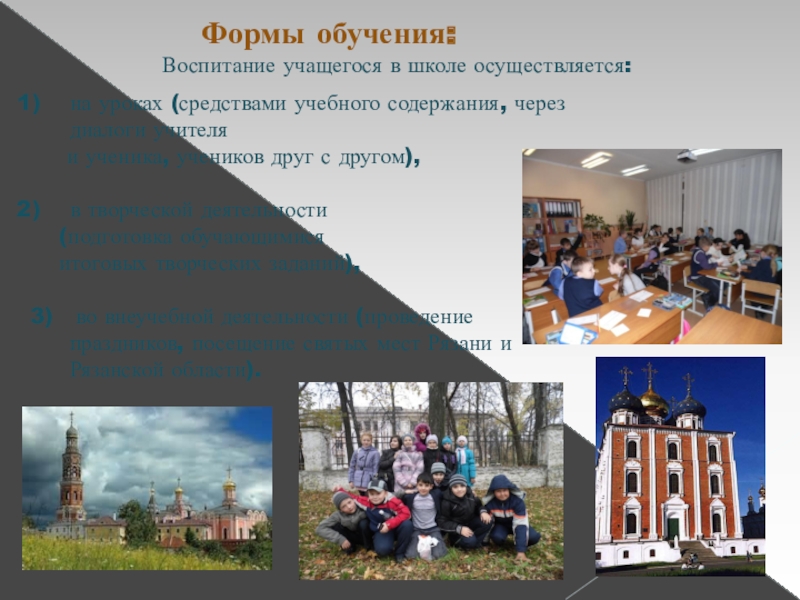 3. Фрагменты церковной музыки и пения, образцы церковной архитектуры и живописи.