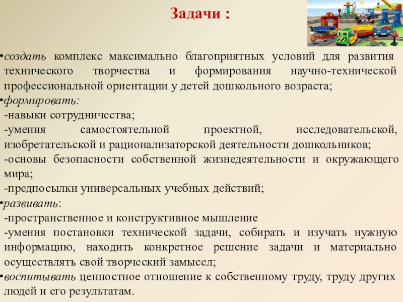 формирования научно-технической профессиональной ориентации у детей дошкольного возраста;