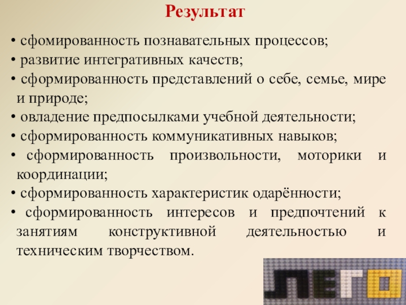 сформированность интересов и предпочтений к занятиям конструктивной деятельностью и техническим творчеством.
