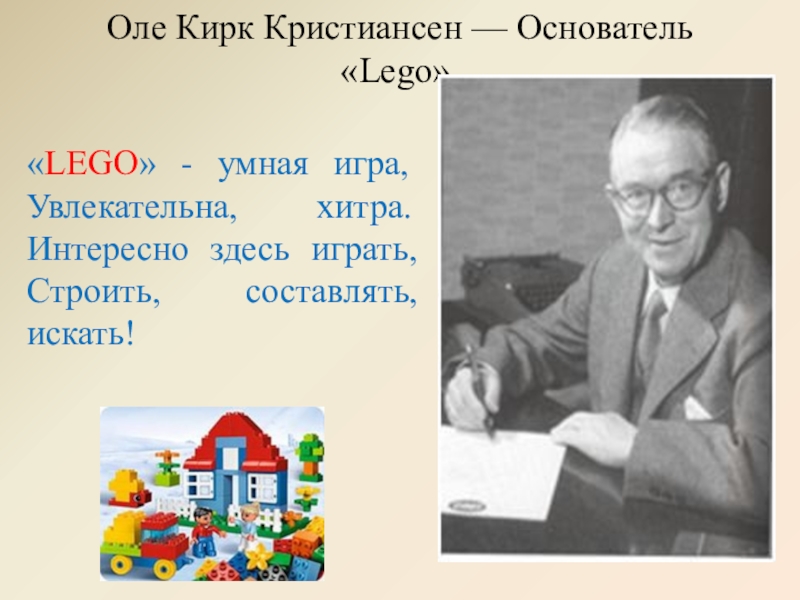 Слайд 2Оле Кирк Кристиансен — Основатель «Lego».