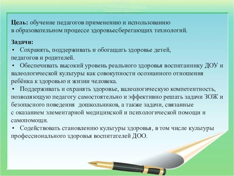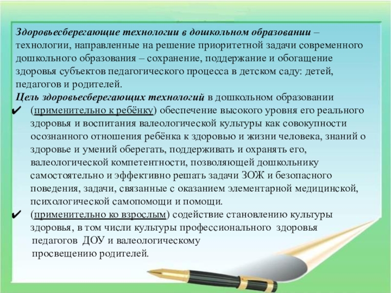 полноценное питание, личная гигиена)