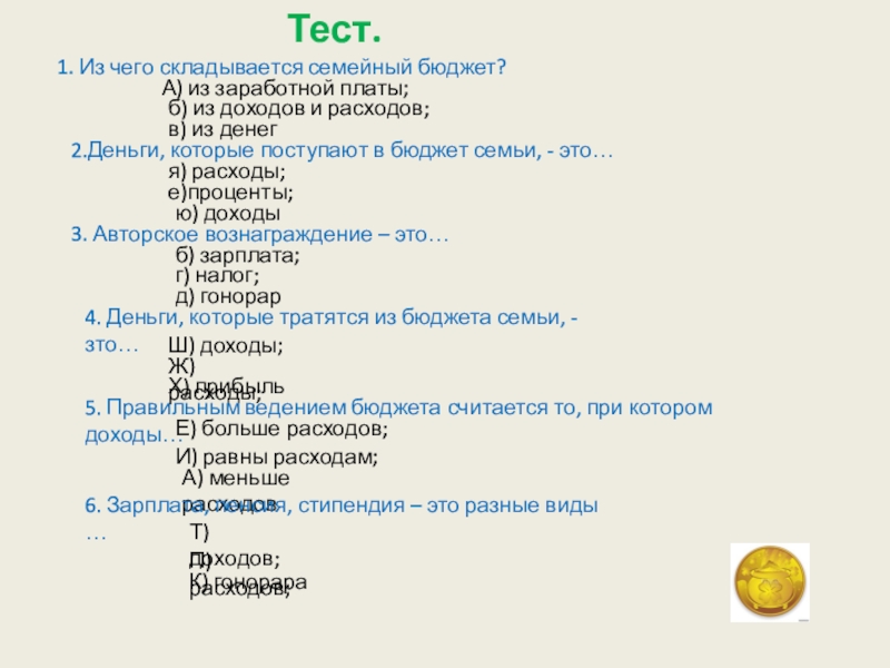 2.Деньги, которые поступают в бюджет семьи, - это…