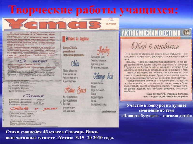 напечатанные в газете «Ұстаз» №19 -20 2010 года.