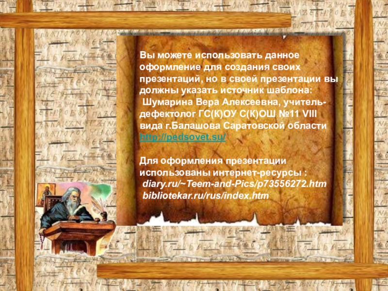 Вы можете использовать данное оформление для создания своих презентаций, но в своей презентации вы должны указать источник