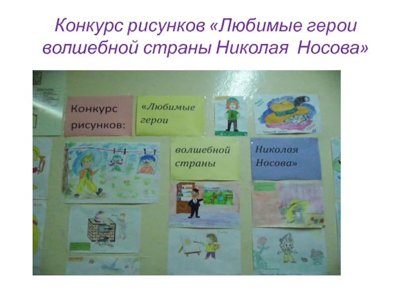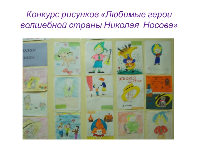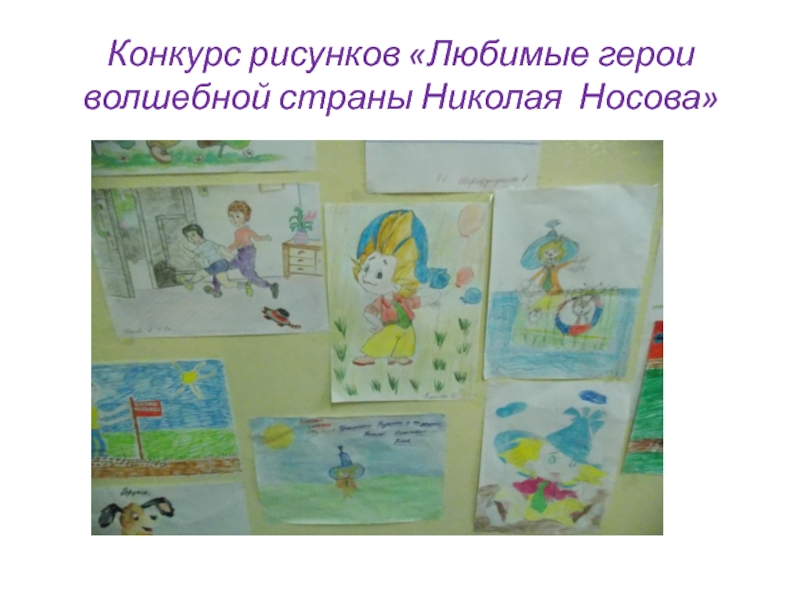 Слайд 27Конкурс рисунков «Любимые герои волшебной страны Николая Носова»