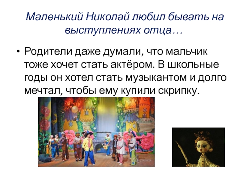 Слайд 4 Маленький Николай любил бывать на выступлениях отца…