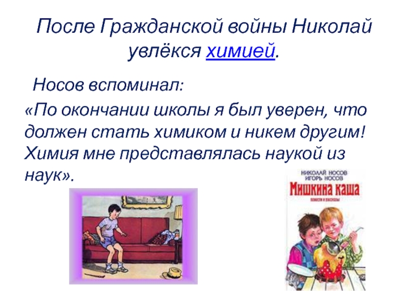 Слайд 7После Гражданской войны Николай увлёкся химией.
