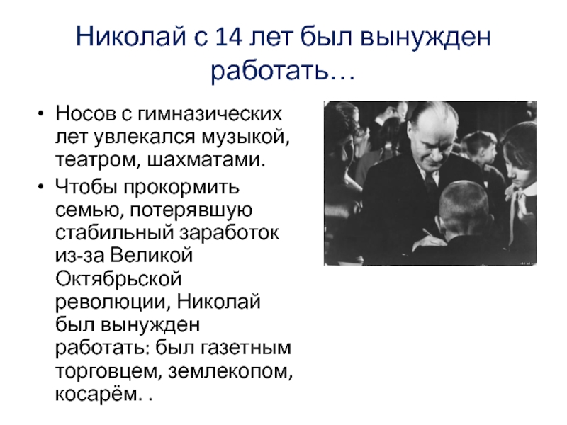 Слайд 6Николай с 14 лет был вынужден работать…