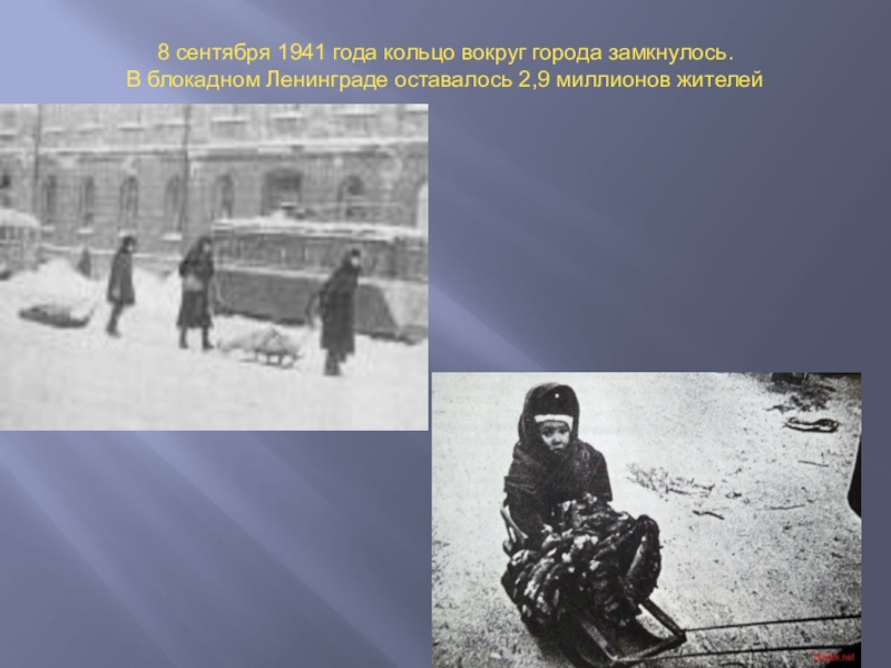 8 сентября 1941 года кольцо вокруг города замкнулось.В блокадном Ленинграде оставалось 2,9 миллионов жителей