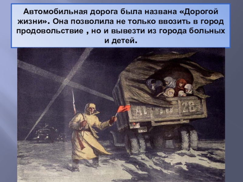 Слайд 21Автомобильная дорога была названа «Дорогой жизни». Она позволила не только ввозить