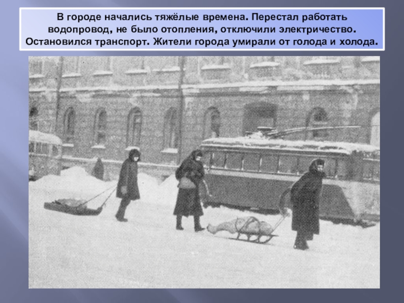 Слайд 15В городе начались тяжёлые времена. Перестал работать водопровод, не было отопления,
