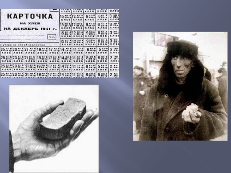 Слайд 12В ноябре 1941 года рабочие получали 250 граммов хлеба в день,