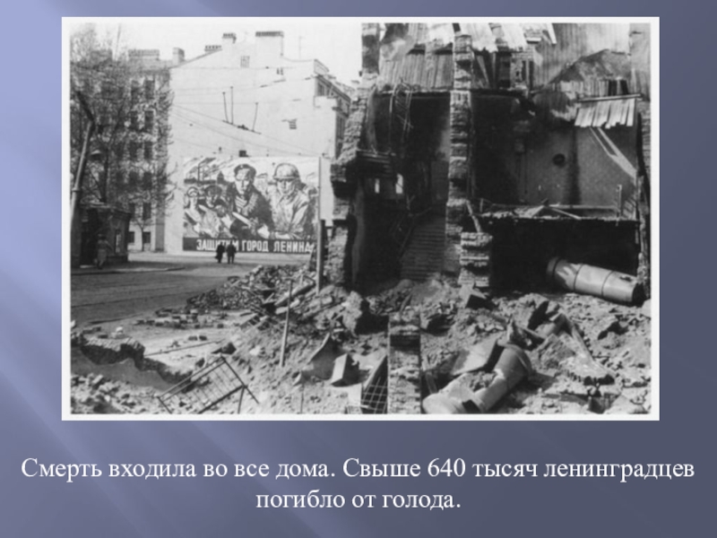 Слайд 3Смерть входила во все дома. Свыше 640 тысяч ленинградцев погибло от