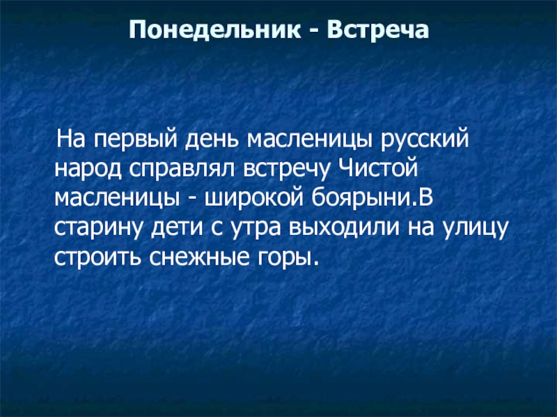 встречу Чистой масленицы - широкой боярыни.В старину дети с утра выходили на улицу строить снежные горы.