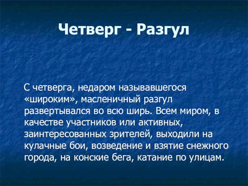 С четверга, недаром называвшегося «широким», масленичный разгул