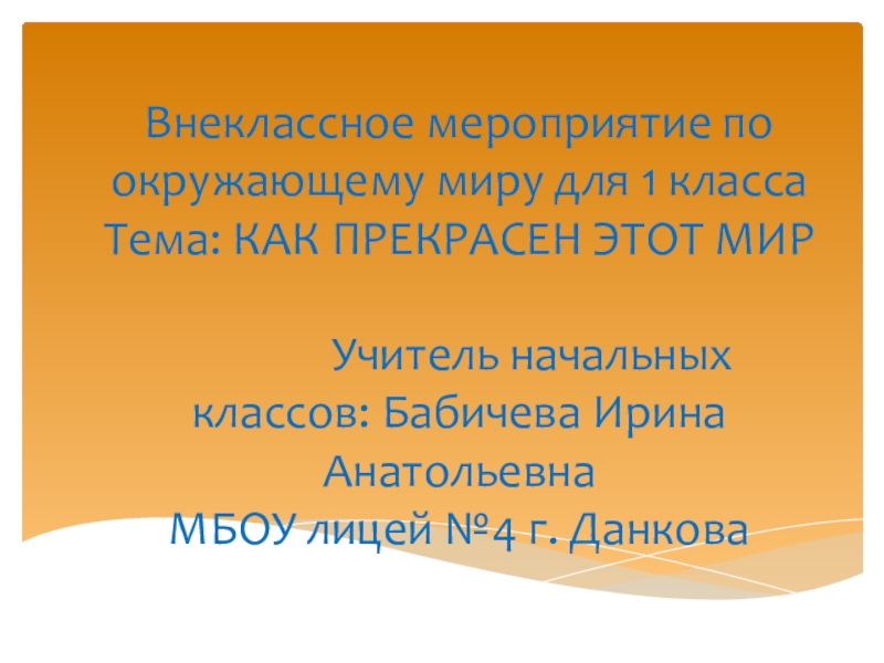 Учитель начальных классов: Бабичева Ирина Анатольевна
