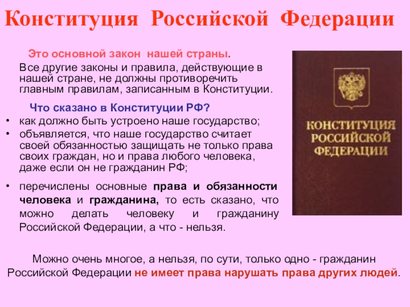 Можно очень многое, а нельзя, по сути, только одно - гражданин Российской Федерации не имеет права нарушать права других людей.