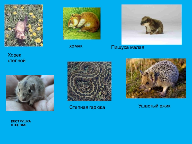 и луковиц, то и большинство животных живут среди травы либо в почве. Это змеи, ящерицы, насекомые (бабочки, шмели, пчелы, саранча, кузнечики, различные жуки), пауки.
