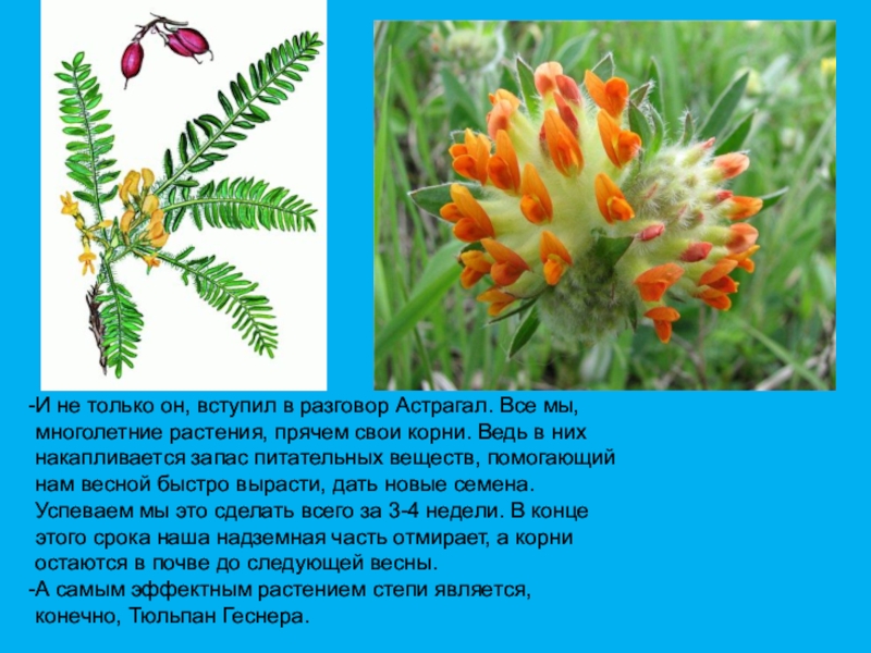 Слайд 14И не только он, вступил в разговор Астрагал. Все мы, многолетние