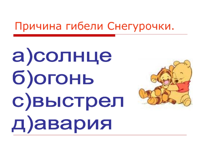 Слайд 26Причина гибели Снегурочки.