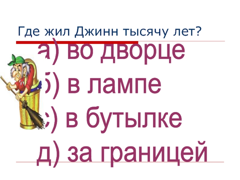 Слайд 5Где жил Джинн тысячу лет?