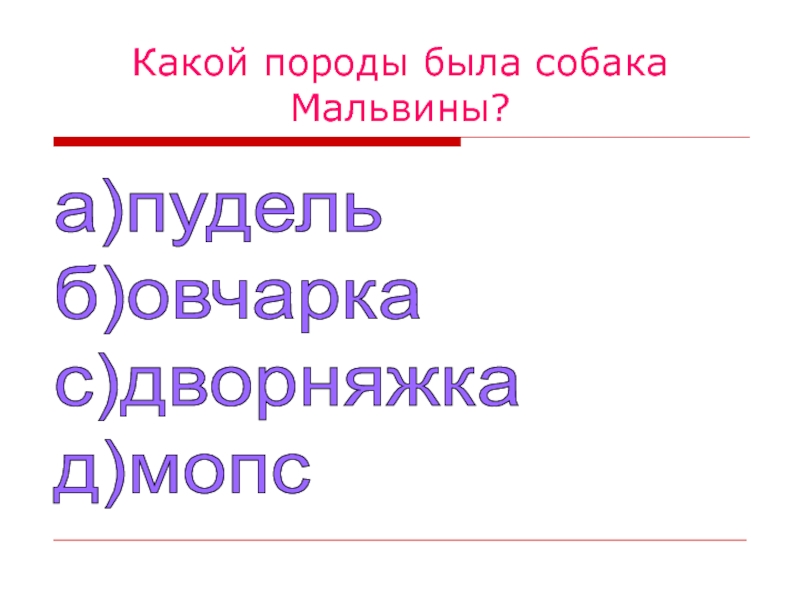 Слайд 46Какой породы была собака Мальвины?