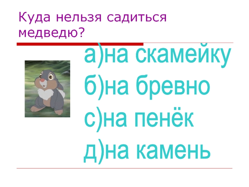 Слайд 22Куда нельзя садиться медведю?