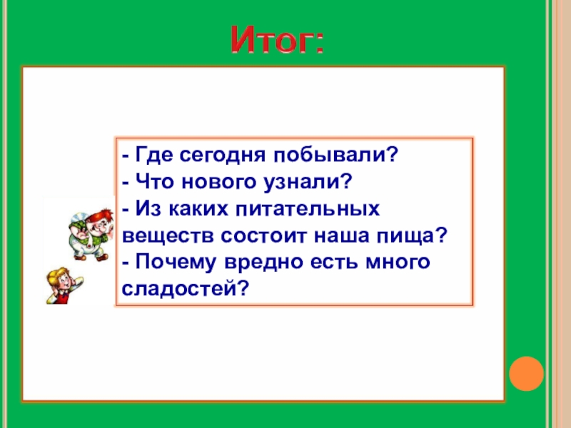 Презентация, доклад на тему Внеклассное мероприятие по правильному питанию