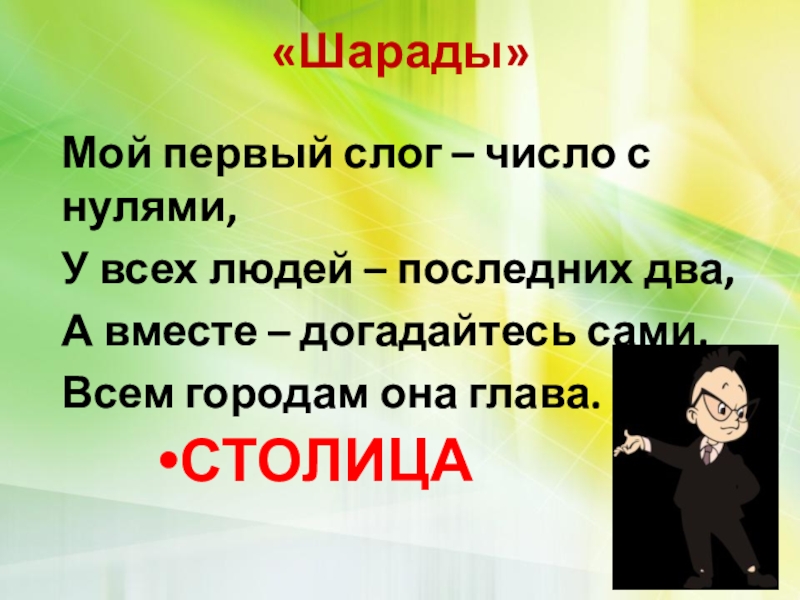 Это сайт презентаций, где можно хранить и обмениваться своими презентациями, докладами, проектами, шаблонами в формате PowerPoint с другими пользователями. Мы помогаем школьникам, студентам, учителям, преподавателям хранить и обмениваться учебными материалами.