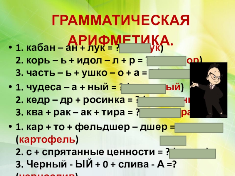 ГРАММАТИЧЕСКАЯ АРИФМЕТИКА.