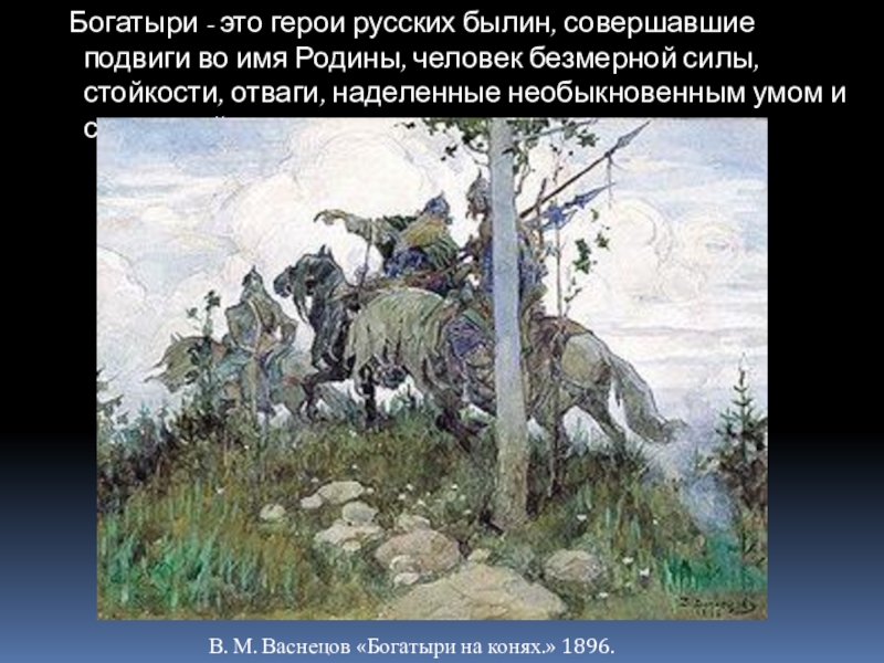В. М. Васнецов «Богатыри на конях.» 1896.
