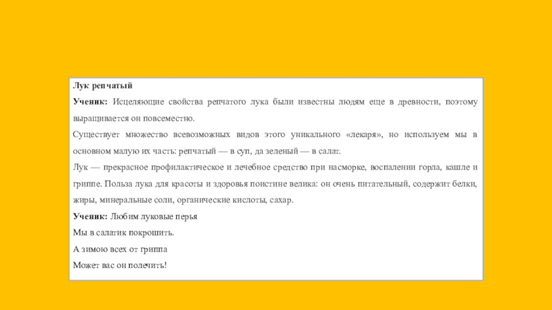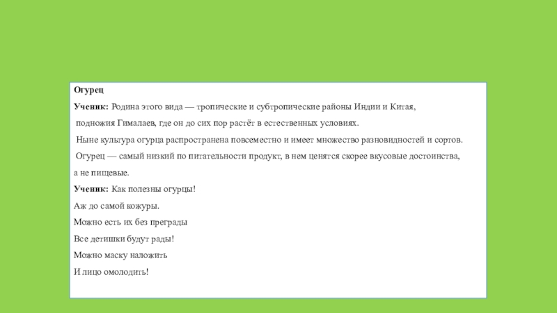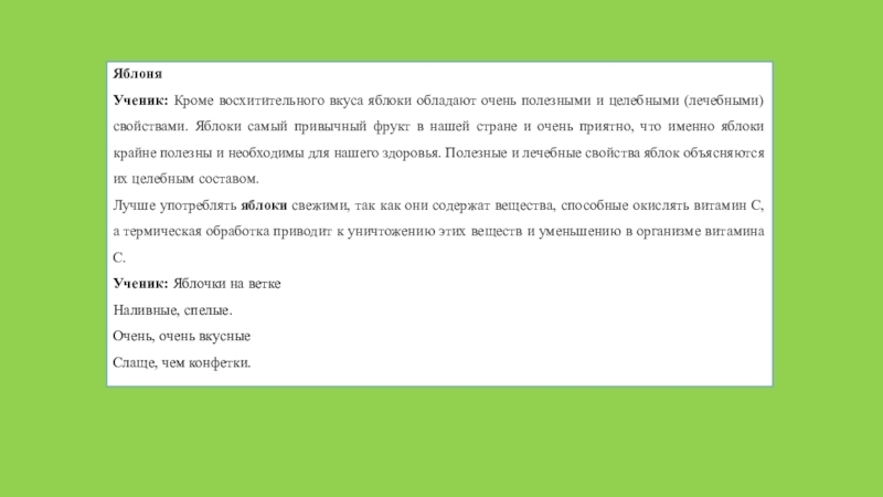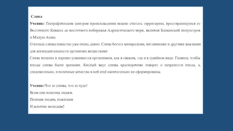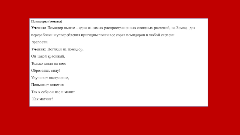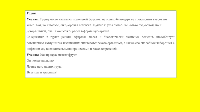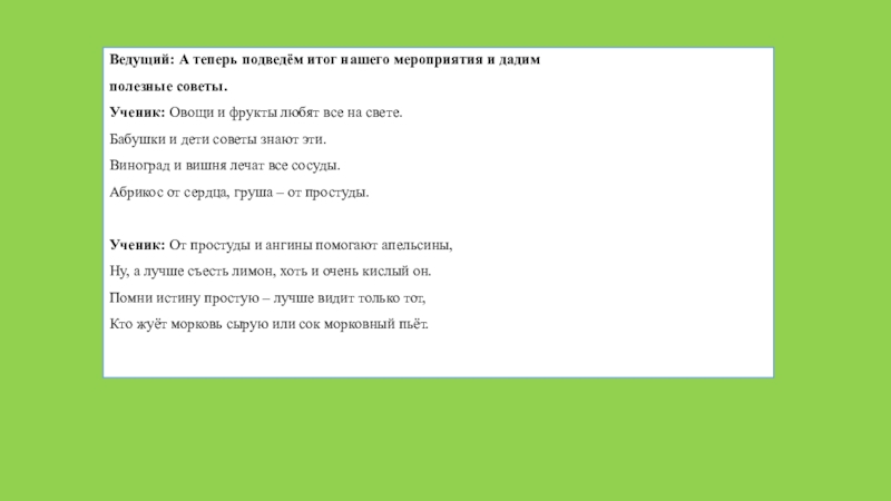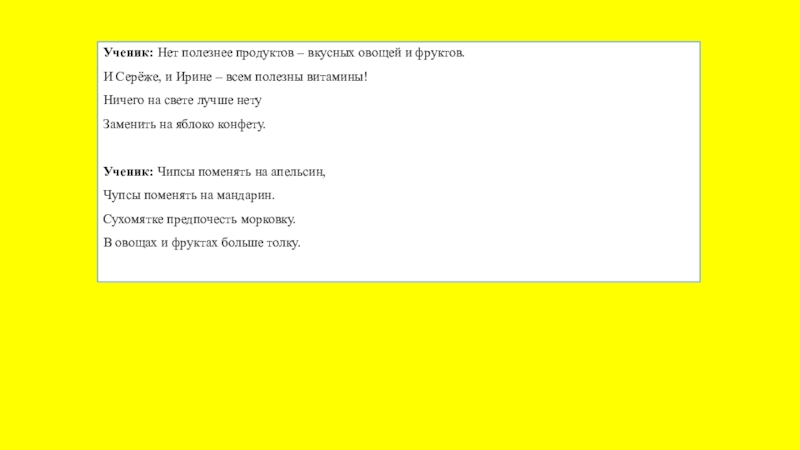 Слайд 35Ученик: Нет полезнее продуктов – вкусных овощей и фруктов.