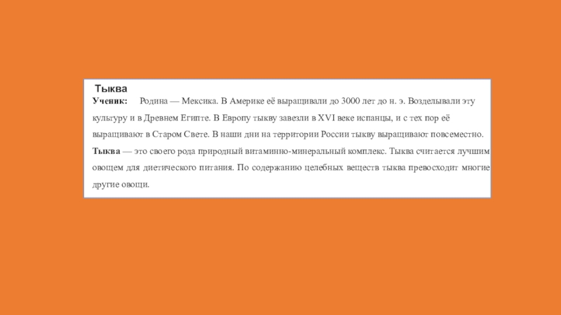 Ученик: Родина — Мексика. В Америке её выращивали до