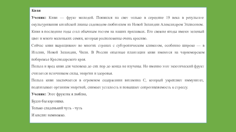 Ученик: Киви — фрукт молодой. Появился на свет только в середине