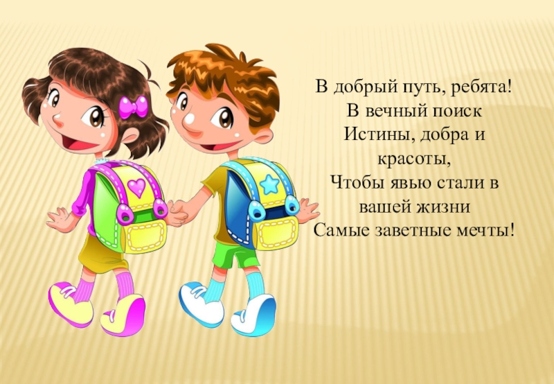 В добрый путь, ребята! В вечный поиск Истины, добра и красоты, Чтобы явью стали в вашей жизни