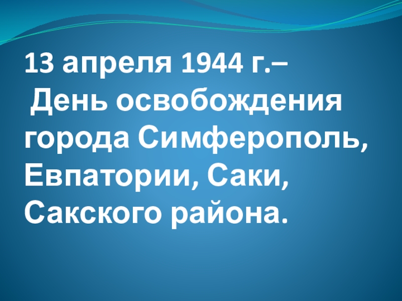 13 апреля 1944 г.–  День освобождения города Симферополь, Евпатории, Саки, Сакского района.