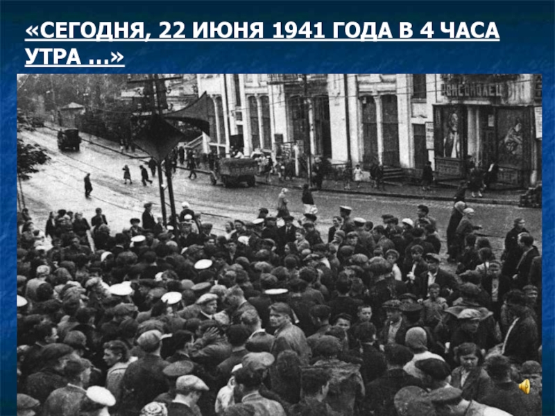 Слайд 2«СЕГОДНЯ, 22 ИЮНЯ 1941 ГОДА В 4 ЧАСА УТРА …»