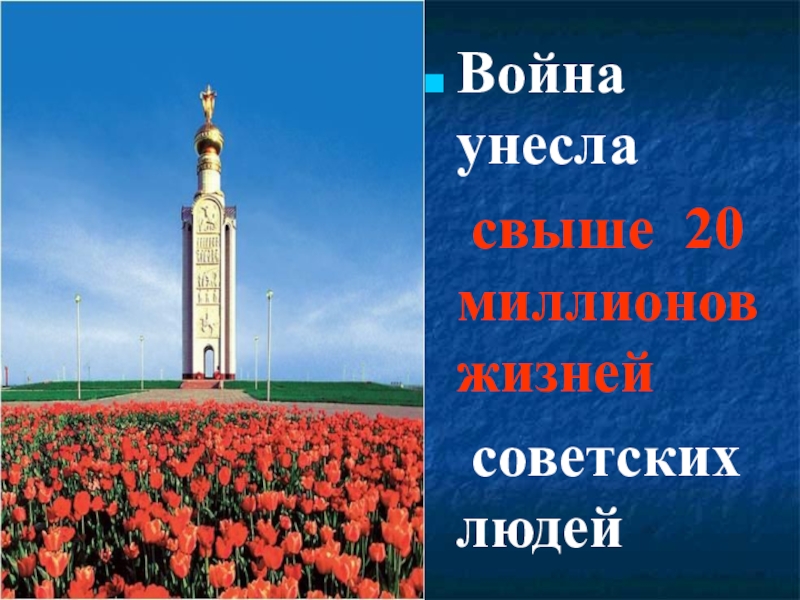 Война унесла  свыше 20 миллионов жизней  советских людей
