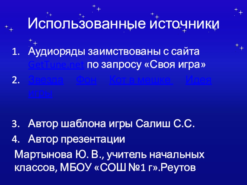 Это сайт презентаций, где можно хранить и обмениваться своими презентациями, докладами, проектами, шаблонами в формате PowerPoint с другими пользователями. Мы помогаем школьникам, студентам, учителям, преподавателям хранить и обмениваться учебными материалами.