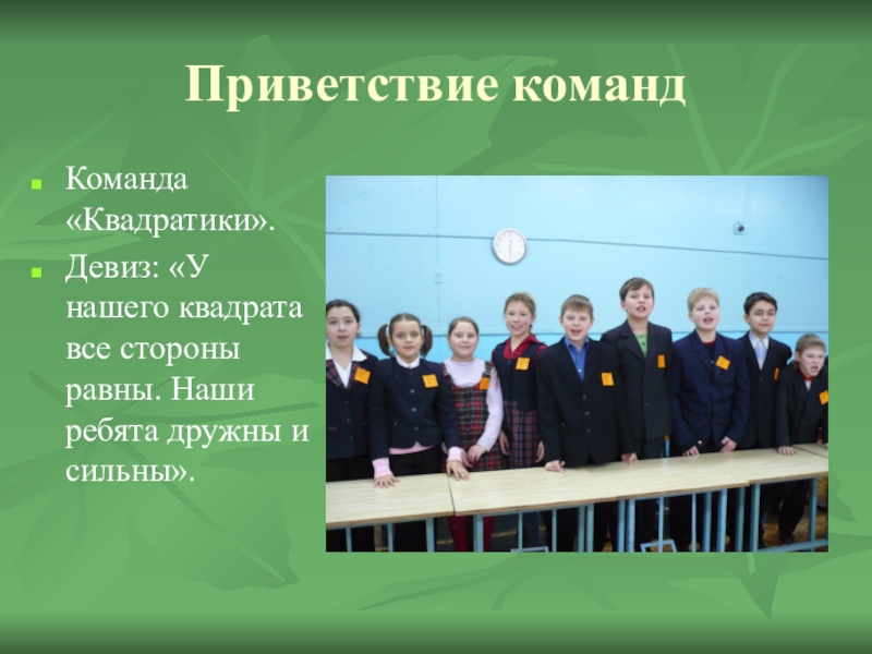 Девиз: «У нашего квадрата все стороны равны. Наши ребята