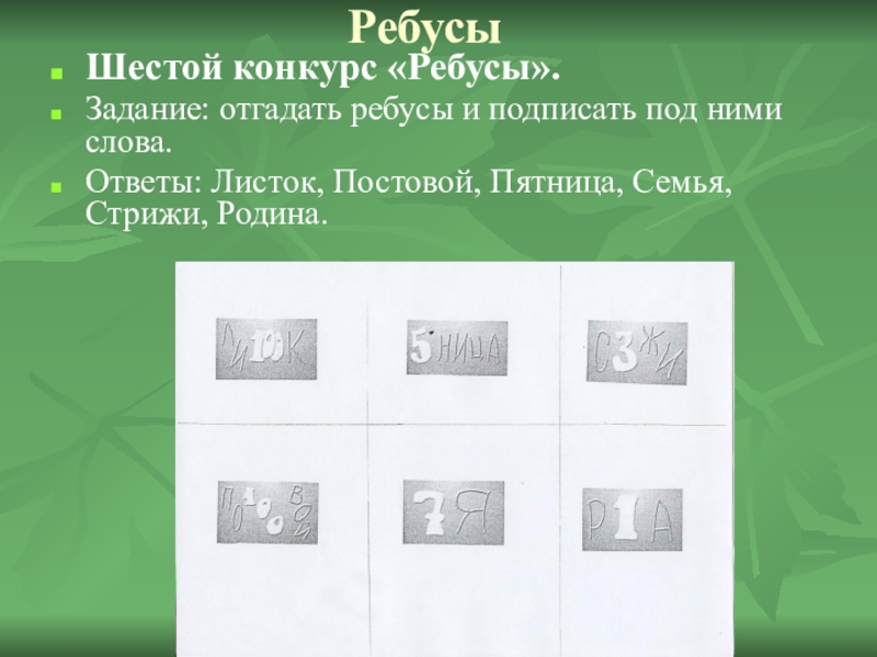 Шестой конкурс «Ребусы».