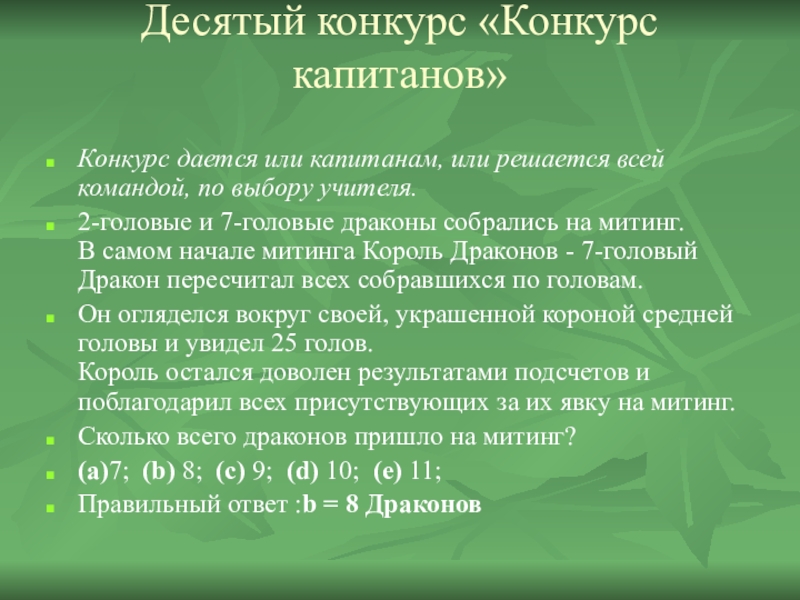 Слайд 19Десятый конкурс «Конкурс капитанов»