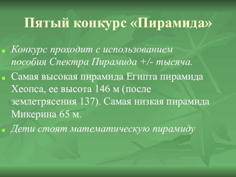 Слайд 13Пятый конкурс «Пирамида»